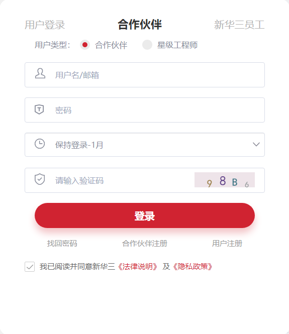 3. 选择“合作伙伴”,“找回密码”