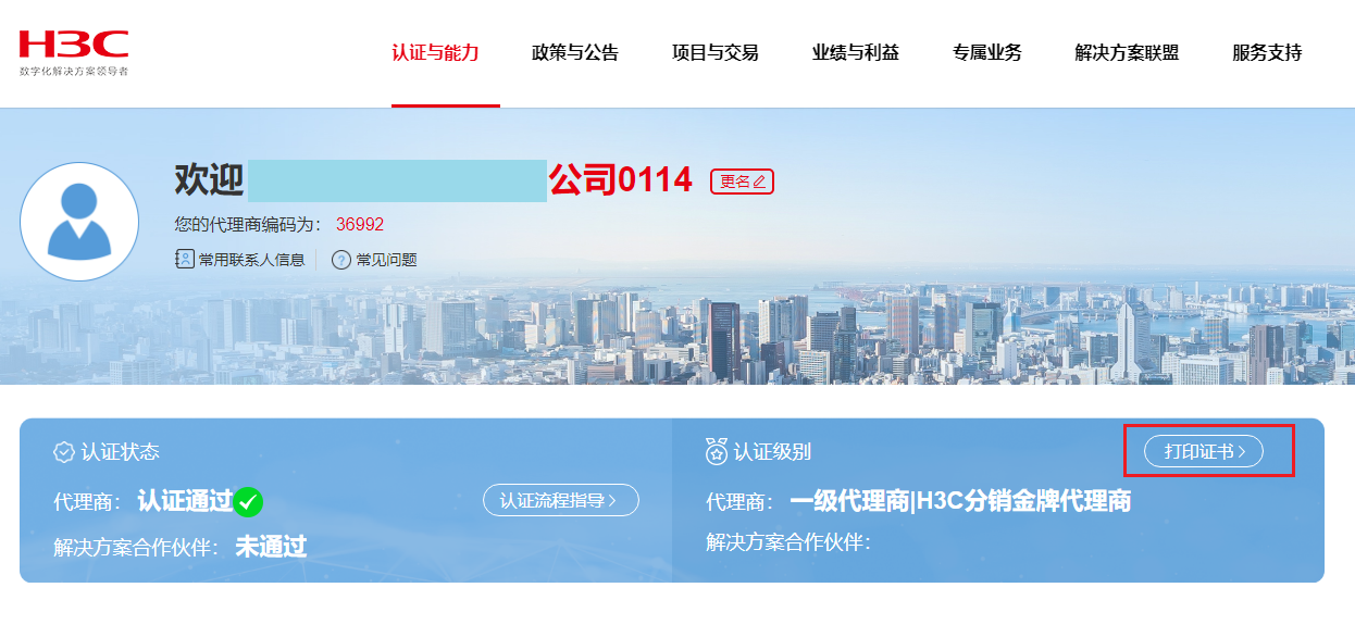 收到系统提醒,请您打印承诺书并加盖公章后按说明上传彩色扫描版至H3C官网-认证与能力-认证代理商流程-代理商协议签订(时间点:提交认证及合规审核通过后)