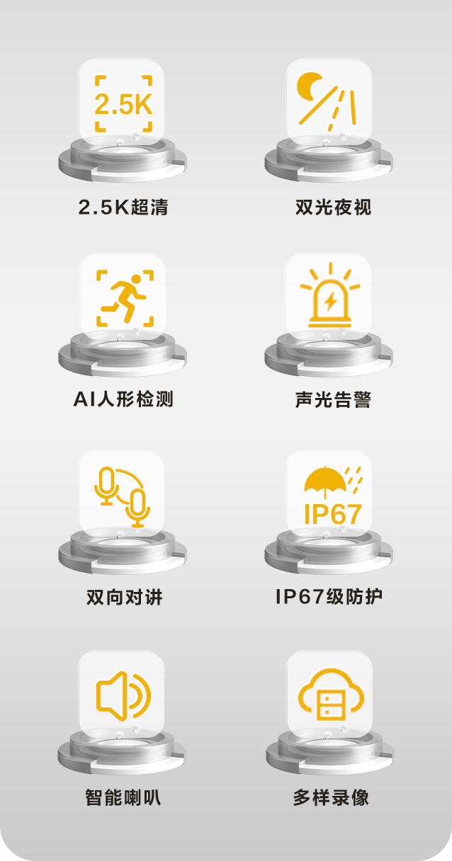 检测到人形目标时,摄像机内置白光灯闪烁,并发出蜂鸣声内置AI芯片,相比传统设备识别效果更精准