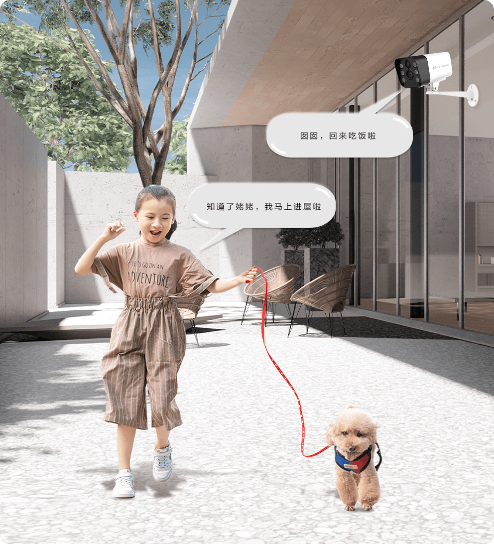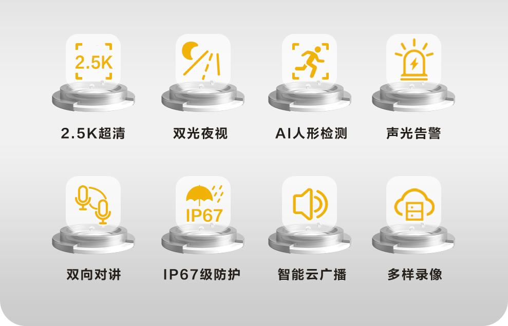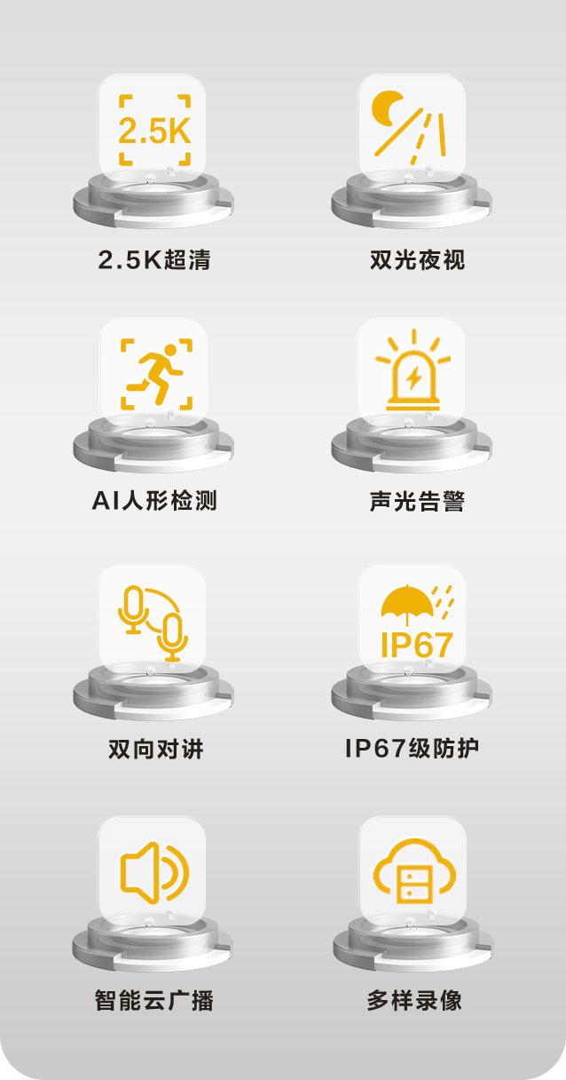 检测到人形目标时,摄像机内置白光灯闪烁,并发出蜂鸣声内置AI芯片,相比传统设备识别效果更精准