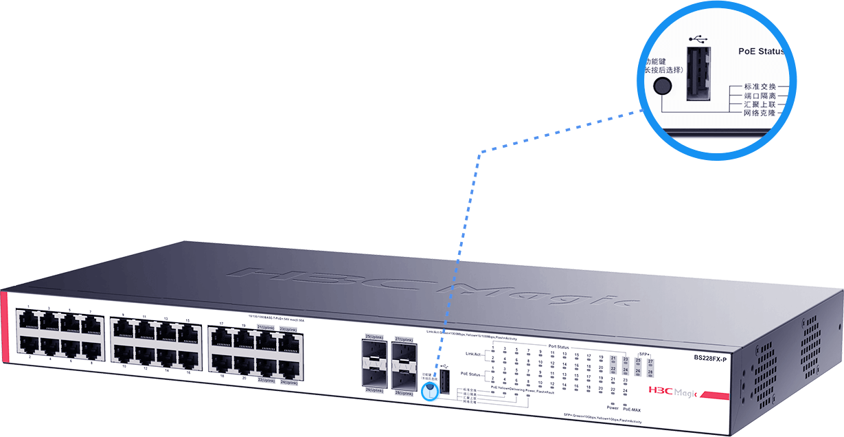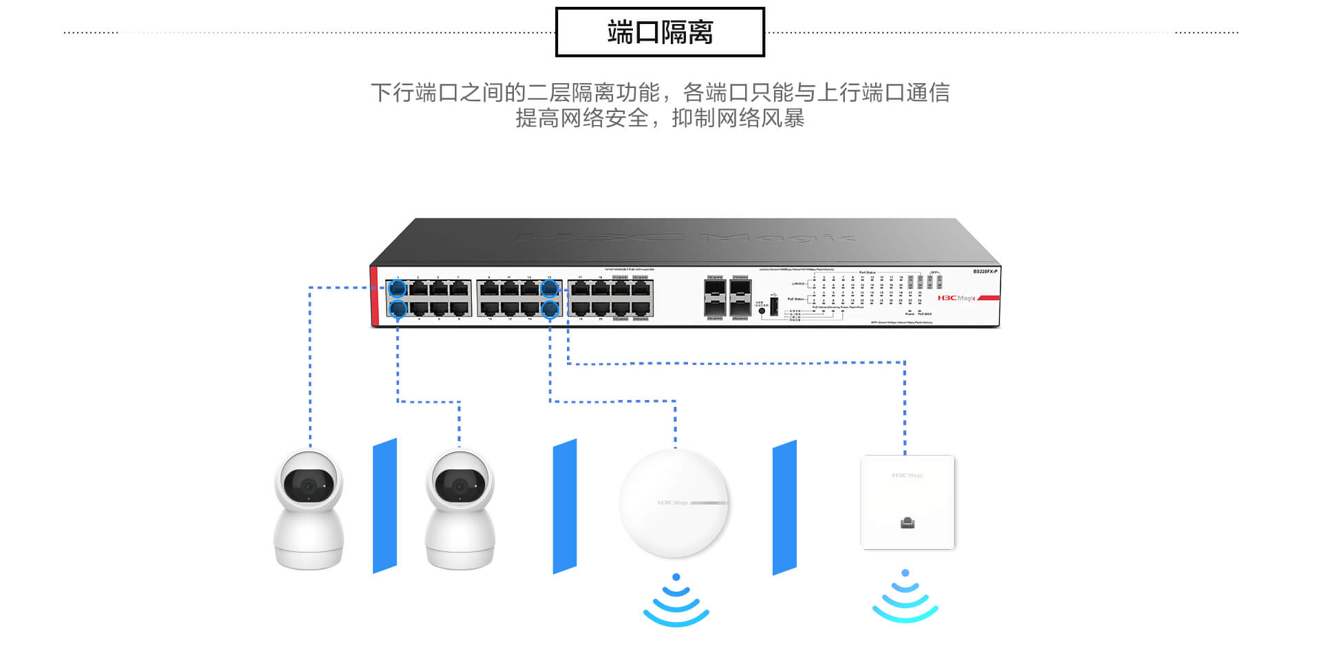 支持“标准交换、端口隔离、汇聚上联、网络克隆”四种工作模式