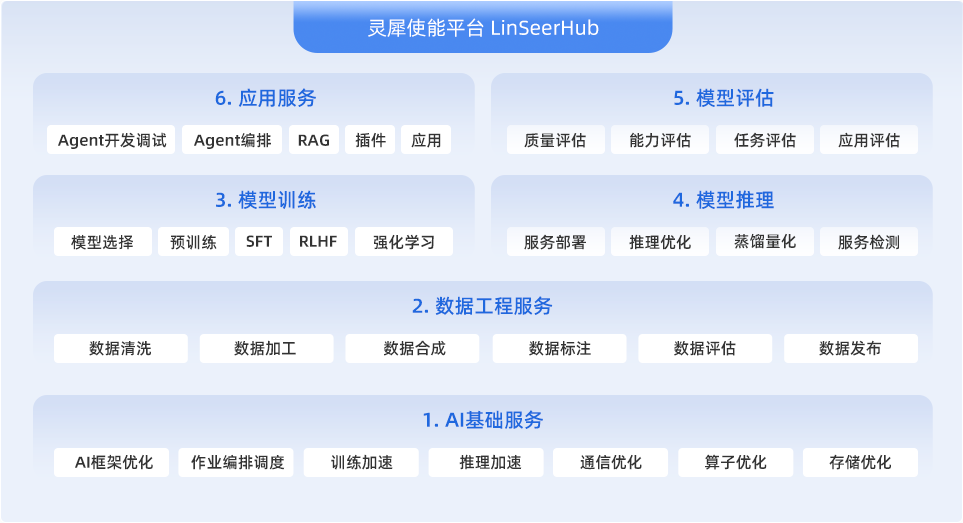 新华三依托全栈AI能力,通过AI基础服务、数据工程服务、模型训练、模型推理、模型评估、应用服务和数字资产管理构建起覆盖大模型全生命周期的一站式AI业务平台,最大化降低AI使用门槛。