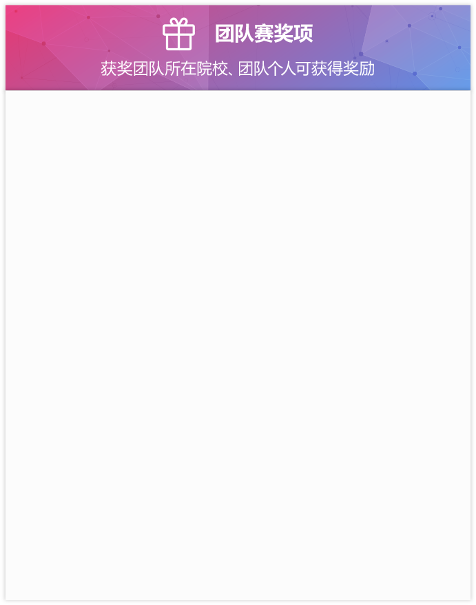 团队赛组队规则:3人成组,此3人需来自同一院校,且至少1人为晋级决赛的选手。即院校可安排参加预赛但未进决赛的选手参与组队,但其成绩只计入团队赛,不参与决赛个人赛排名;