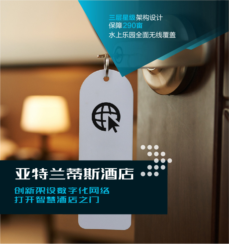 在亚特兰蒂斯酒店的无线网络设计上,对于无线网项目的建设需求,主要是实现对水上乐园等公共开放区域以及酒店房间的有效覆盖,保证高速稳定的无线接入速率,有效阻止非授权用户访问无线网络及网络相应安全与加密措施。