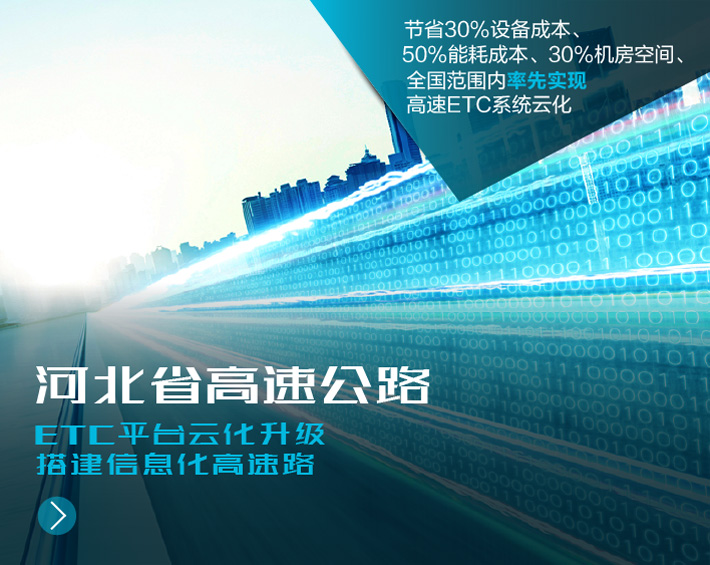新华三帮助河北省高速公路搭建了业界领先的ETC云平台,不仅为其节省了30%的设备成本、50%的能耗成本与30%的机房空间,还为其实现了多业务系统的全面升级,