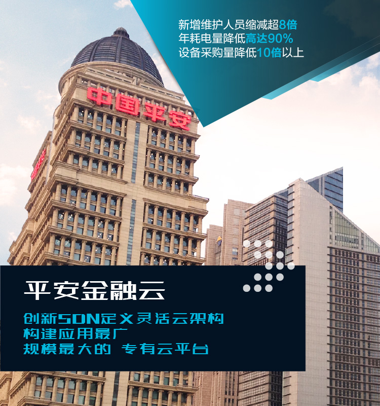 移动互联应用的开发、测试和迭代需要高效、迅速的IT架构支持,原有的传统基础架构显然已经无法满足移动互联时代的应用开发需求。为了把握金融业务数字化转型的重要机遇,平安集团采用新华三SDN解决方案,构建起目前金融行业应用最广、规模最大的平安金融云,为推动金融产业数字化转型升级提供了全新动力。