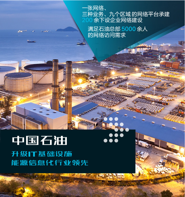 新华三不仅优化了中国石油整体网络能力,还根据不同需求,针对各地分公司的网络性能进行全面提升:为中国石油塔里木油田三网分离项目一期打造的有线无线一体化解决方案,有效实现了有线和无线网络的融合,提高管理效率;面对炼化板块大连石化和锦西石化视频监控原有网络设备使用年限较长、性能无法满足业务需求的问题,新华三采用基础承载网络升级建设方案,提高了网络设备的安全性和可靠性,满足了业务延展的需求。