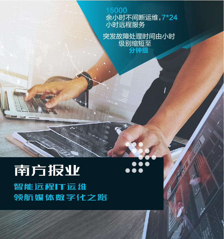 完成整个智能远程运维服务解决方案部署之后,南方报业得到的是一张7*24小时不间断的智能远程运维服务网络。这将极大节省维护和优化网络的时间与精力,改善了IT运维环境,保障了业务稳定安全持续运行。