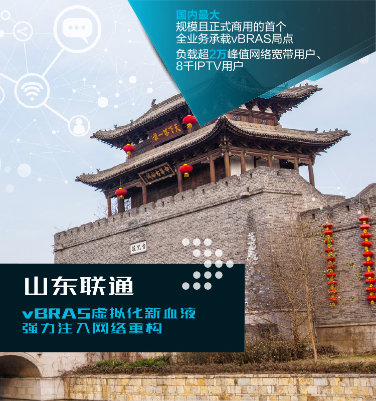 2016年,中国联通首个现网vBRAS技术验证工作,在山东枣庄IP城域网展开,经过测试,新华三vBRAS方案能充分满足现网商用可行性。2017年11月,枣庄试点验证和割接工作全面完成,山亭区全部宽带业务割接至vBRAS资源池承载,实现了IPTV业务的转发控制分离,并且现网运行稳定、服务质量得到进一步提升。