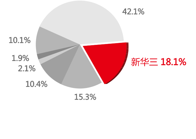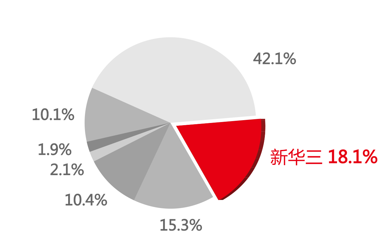 2017年,新华三以18.1%的市场份额连续第三年占据中国服务器虚拟化市场第二、国产品牌第一位置