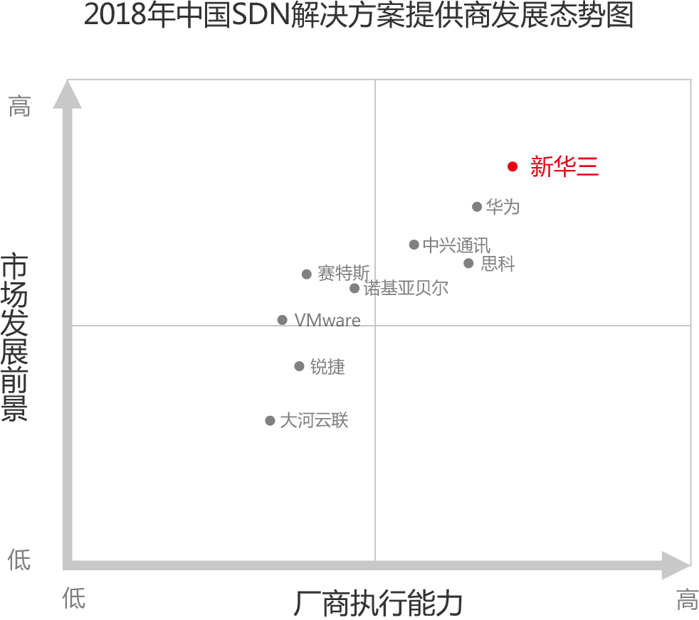 计世资讯研究显示, 2018年中国SDN(软件)市场,新华三、华为、中兴通讯、诺基亚贝尔、思科名列前五位。从当前的市场份额来看,国产厂商占据了市场的主导地位,这是由于国产化趋势的影响,且这其中的一些领先厂商可以针对不同行业用户的需求,提供场景化的解决方案和服务。