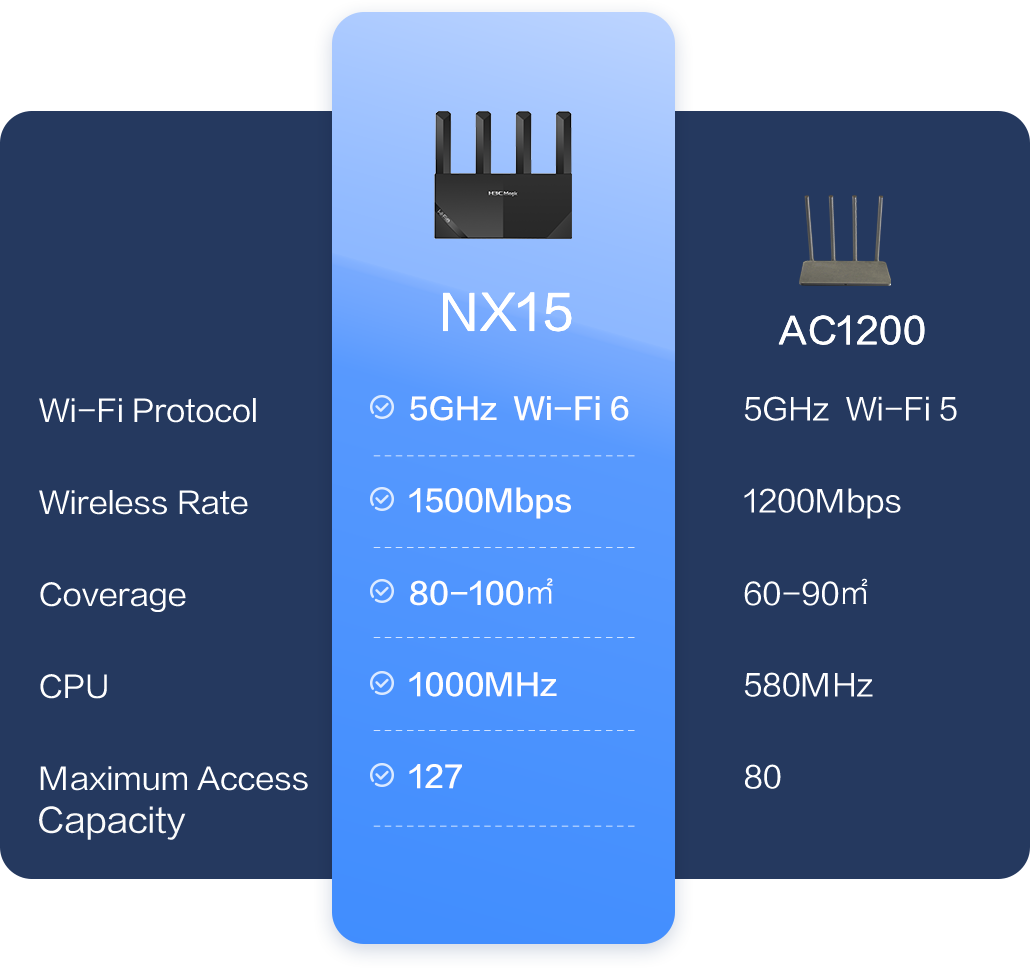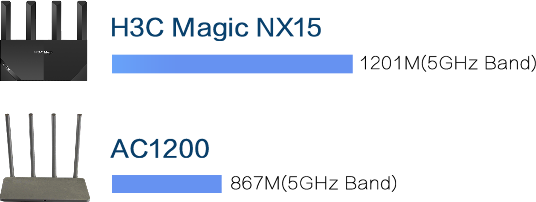 - Simultaneous dual-band: 1501 Mbps, including 300Mbps on the 2.4GHz band and 1201 Mbps on the5GHz band.