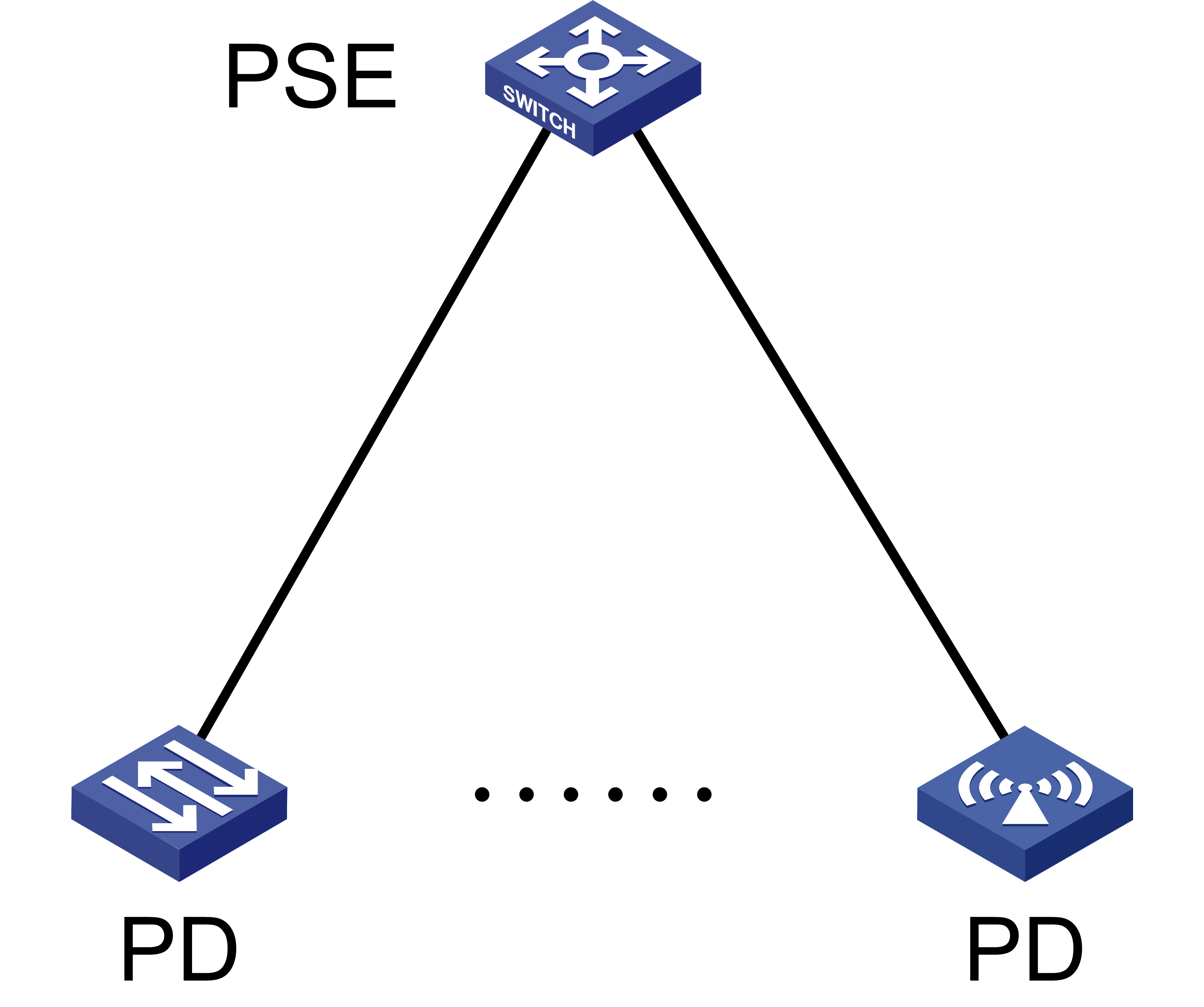 In the one-tier PoE power supply scenario, the PSE provides power directly to the connected PD (for